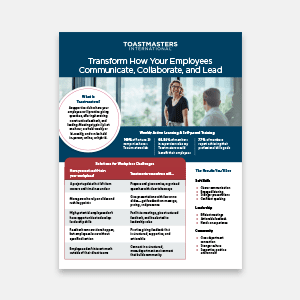 Share this flier with business leaders to show them how their workplace would benefit from a corporate Toastmasters club.