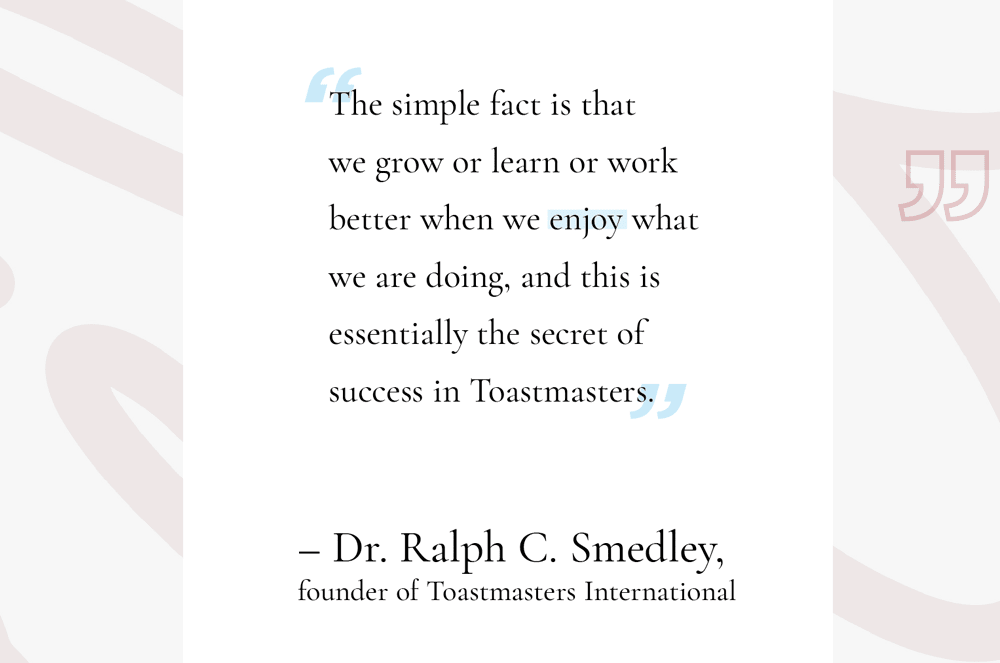 –Dr. Ralph C. Smedley, founder of Toastmasters International