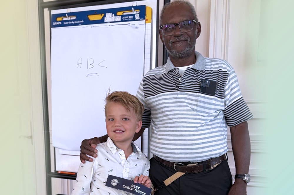 In 2023, Todd Bryant brought his 6-year-old daughter, Cambrie, to her first Toastmasters meeting, where she won the ribbon for best Table Topics® speaker. Two years later, Bryant’s 6-year-old son, Colton, attended his first meeting and also won the best Table Topics ribbon.