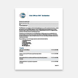 This evaluation resource should be used to help club officers as part of their leadership development process. By allowing members and fellow club officers to complete the evaluation, officers will have a better understanding of their perceived strengths and areas for improvement.