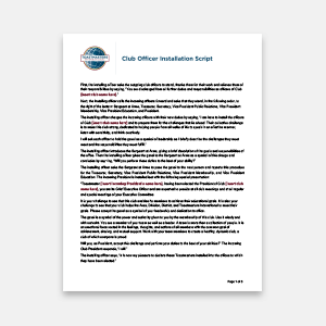 An editable version of the Club Officer Installation Script from the Club Leadership Handbook.