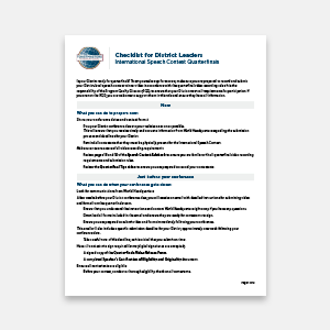 District leaders can use this checklist to ensure that International Speech Contest quarterfinal deadlines and requirements are met.