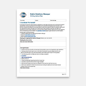 Use the Public Relations Manager 30-Day Action Plan template to create an outline of your strategy for your first month as a district leader. It will help you plan and organize tasks, deadlines, and other resources necessary to your success.