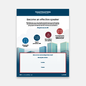 Use this flier to generate interest in companies to charter a toastmasters club. Available in 8.5 x 11, and A4 formats.