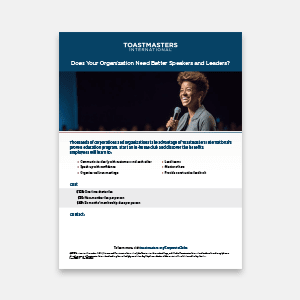 Use this flier to generate interest in companies to charter a Toastmasters club. Available in 8.5 x 11, black and white and A4 formats.
